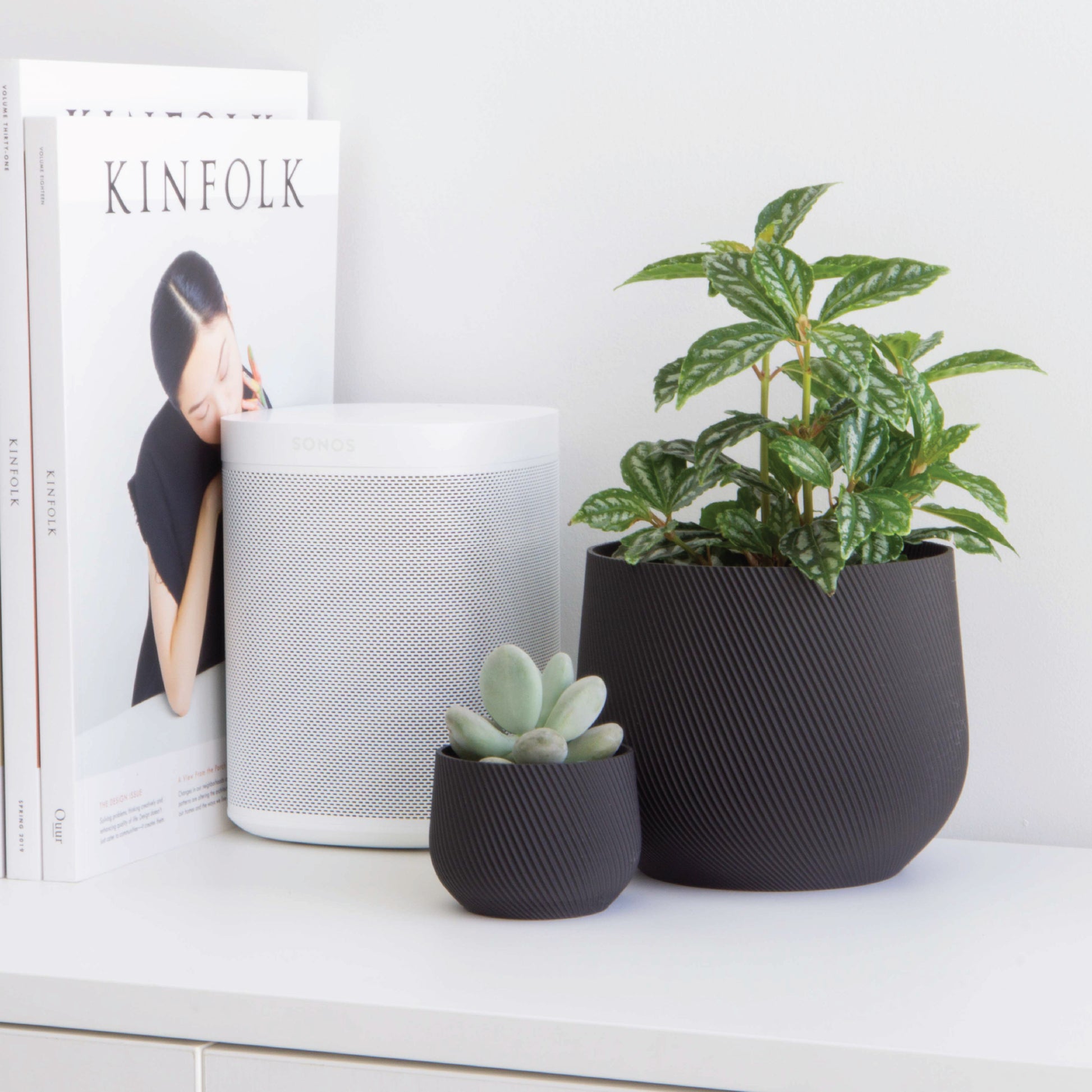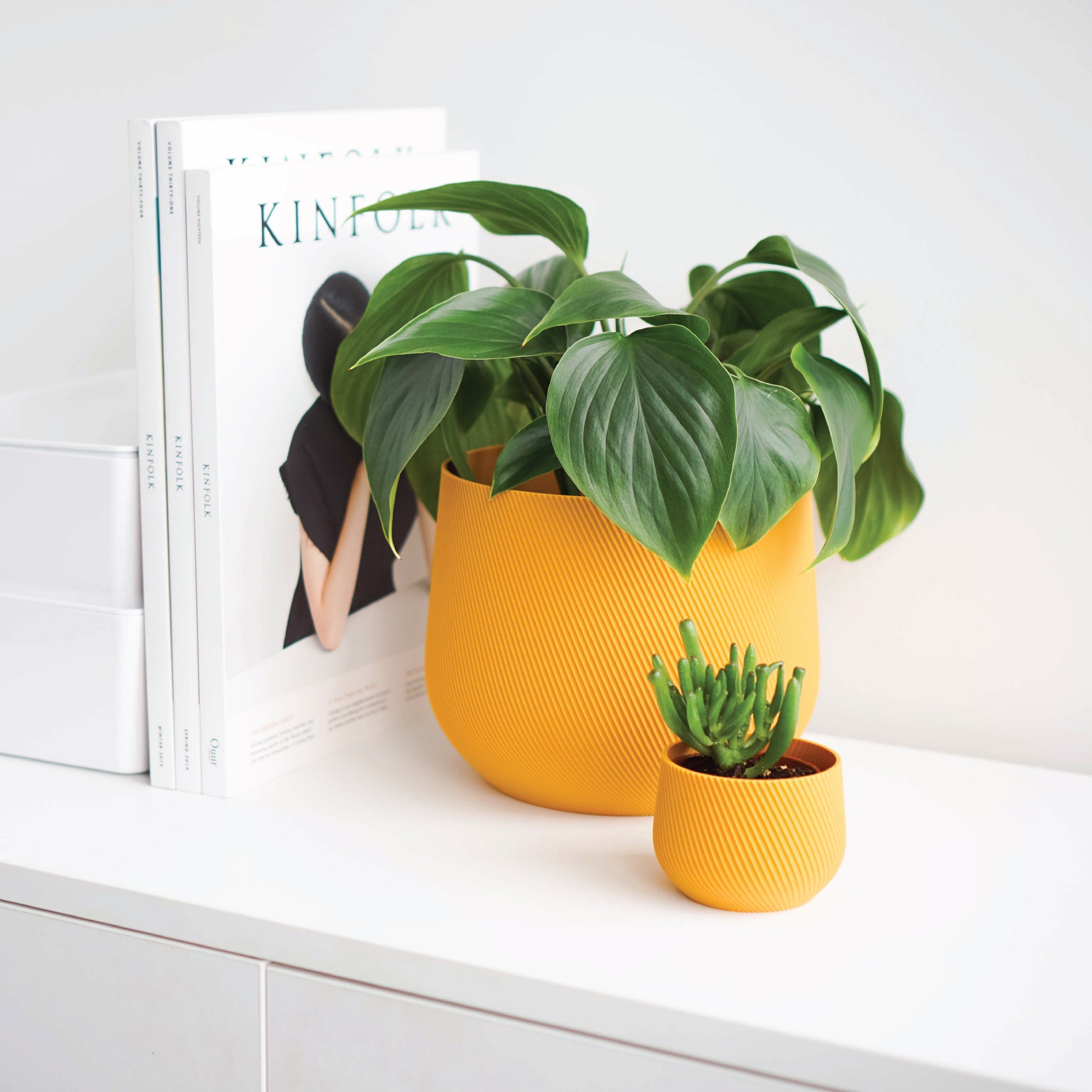 A simple, modern catchpot designed for everyday use. The Juniper line is made from lightweight, plant-based materials and 3D printed in our zero-waste studio. Its minimal design makes it easy to move, water, and style in any space.
