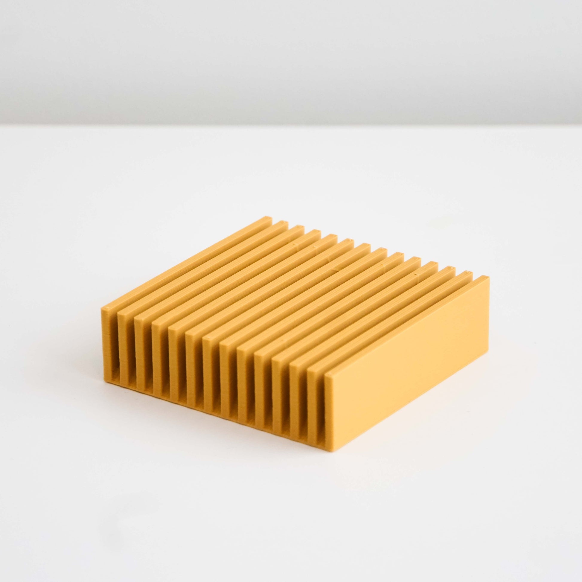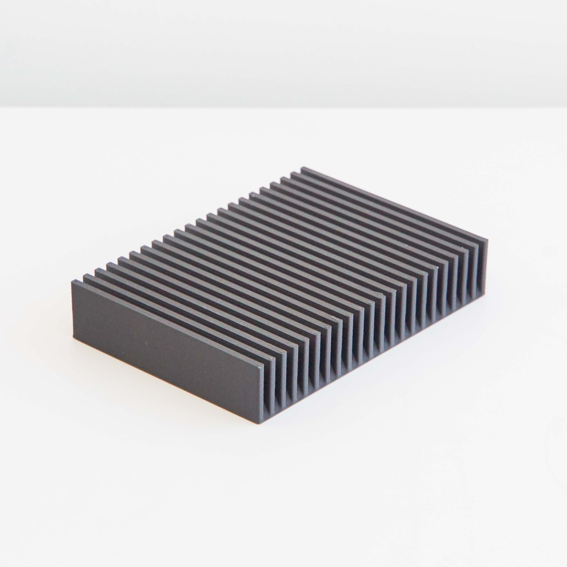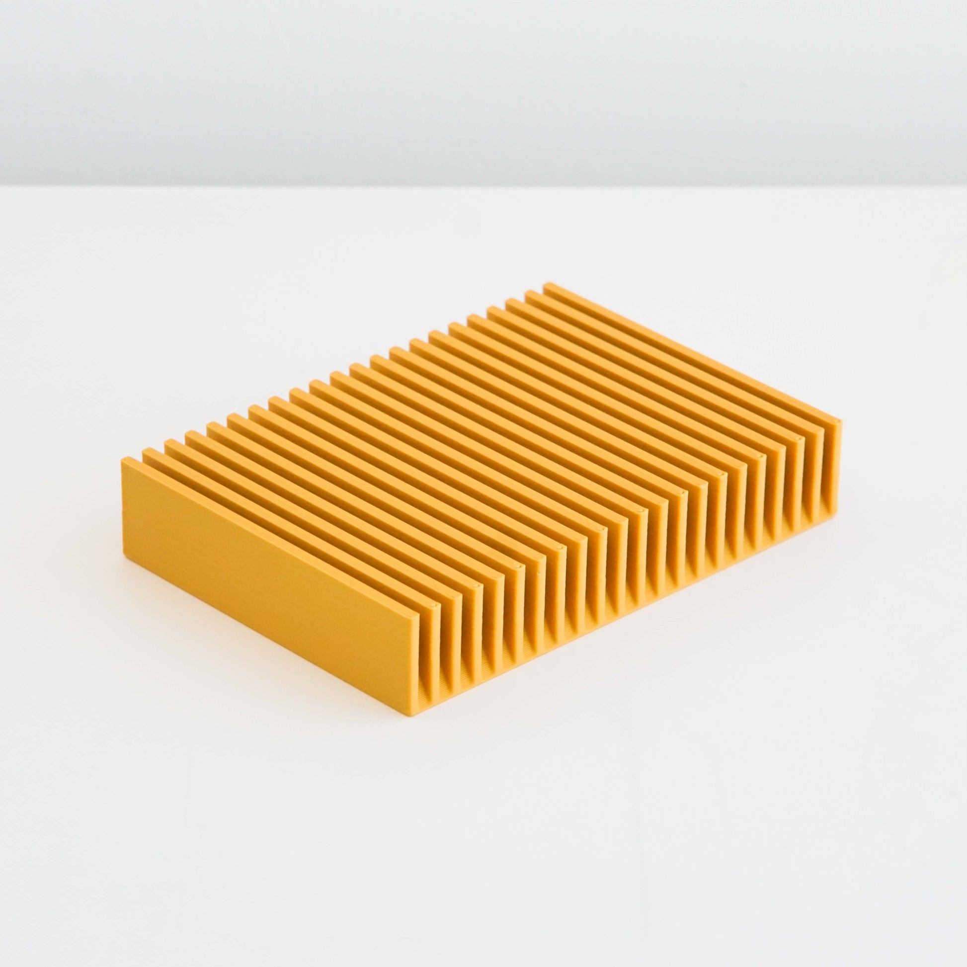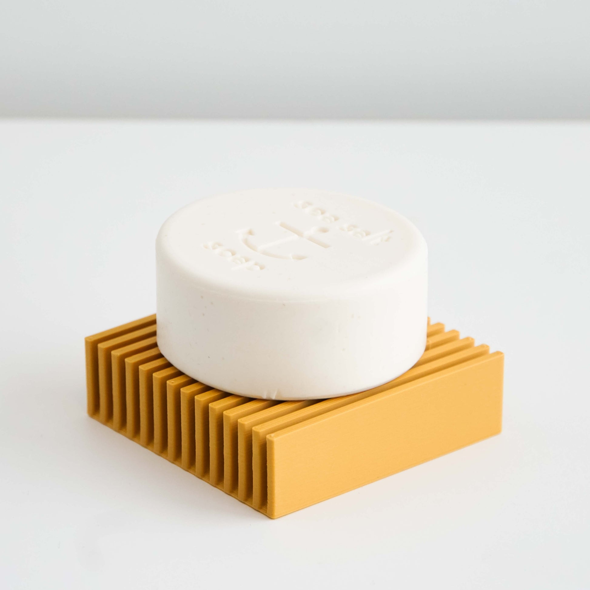 The Douglas Soap Tray utilizes a repetitive geometric pattern to camouflage its internal drip catcher.  Its simple geometric form emphasizes the play between light and dark adding a touch of nuance to the minimal form.